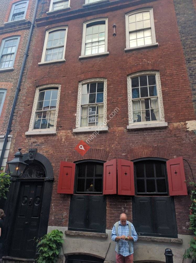 Dennis Severs' House in Folgate Street is a "still-life drama" created by the previous owner as a "historical imagination" of what life would have been like inside for a family of Huguenot silk weavers. It is a Grade II listed Georgian terraced house in Spitalfields, London, England. From 1979 to 1999 it was lived in by Dennis Severs, who gradually recreated the rooms as a time capsule in the style of former centuries. It is now open to the public.The houseThe house is on the south side of Folgate Street, and dates from approximately 1724. It is one of a terrace of houses (Nos 6-18) built of brown brick with red brick dressings, over four storeys and with a basement. The listing for the house, compiled in 1950, describes No 18 as having a painted facade, and that the first floor frames are enriched with a trellis pattern.1979 onwardsDennis Severs was drawn to London by what he called "English light", and made his home in the dilapidated property in Folgate Street in 1979. This area of the East End of London, next to Spitalfields Market, had become very run-down, and artists had started to move in. Bohemian visual artists Gilbert & George added to the flavour of the neighbourhood; resident there since the late 1960s, they also refurbished a similar house.